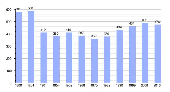 Los datos entre 1800 y 2013 son el resultado de sumar los parciales de las dos comunas que forman la nueva comuna de Nanchez, cuyos datos se han cogido de 1800 a 1999, para las comunas de Chaux-des-Prés[4] y Prénovel[5] de la página francesa EHESS/Cassini. Los demás datos se han cogido de la página del INSEE.[6]