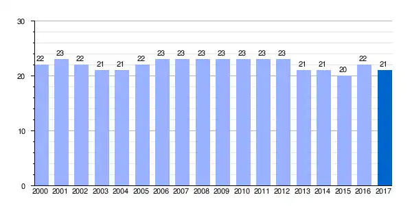 Gráfica de evolución demográfica de Nanclares de Gamboa[3] entre 2000 y 2017 |
