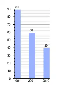 Variación intercensal | - 34 % (2001 - 2010) | |