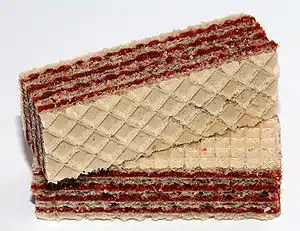 Las napolitanas son unos dulces formados por galletas de oblea con crema de chocolate entre ellas.