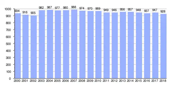 Gráfica de evolución demográfica de Narón entre 2000 y 2018 |