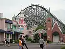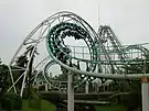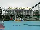 - "Screw Coaster" en funcionamiento, gran montaña rusa hidráulica en el centro del parque.