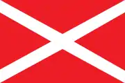 El emblema de "NASHI" es una cruz blanca, oblicua, sobre fondo rojo.