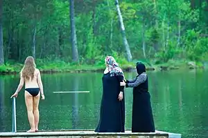 El mundo árabe impone a las mujeres nadar con ropa, para reducir la exposición de la piel por el islam.