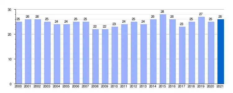 Gráfica de evolución demográfica de Nava de Santullán entre 2000 y 2021 |