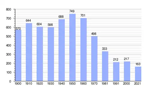 Gráfica de evolución demográfica de Nava de Sotrobal entre 1900 y 2021 |