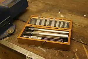 El tipo más común de navaja de precisión lleva una cuchilla de tamaño estándar y mide alrededor de 145 mm en conjunto con el mango. La abrazadera nudosa sirve para aflojar y apretar un collar de aluminio, el cual sujeta la cuchilla sustituible.