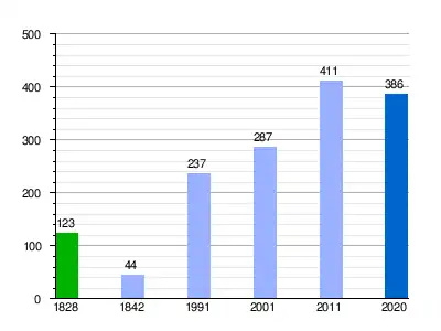 Gráfica de evolución demográfica de Navas de Riofrío[6] entre 1828 y 2020 |