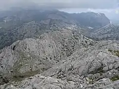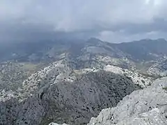 Imagen del mazizo de la Sierra del Caillo y de su máxima altitud, el Pico Navazo Alto, desde las inmediaciones del Salto del Cabrero.