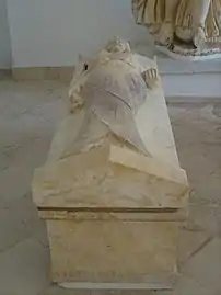 - Sarcófago de la sacerdotisa conservado en el museo nacional de Cartago, realizado en mármol y datado entre el siglo IV y el III a.C. Mide 76 × 197 × 68 cm[26]
