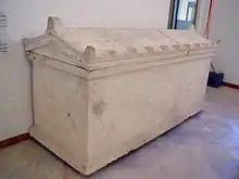 Algunos sarcófagos tiene la forma de los templo griego, con acróteras[28] y frotones que estaban pintados, pero que se borraron después de su descubrimiento. Pueden haber sido realizados en Cartago por inmigrantes griegos.[29] Aunque es probable que el origen sea griego, estaban destinados a la élite económica púnica.[18] El sarcófago, el cuenco y la tapa forman la imagen de la casa de los muertos.[30]