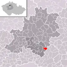 Se encuentra ubicada al norte de la región y de Praga, cerca de la confluencia de los ríos Elba y Moldava, y de la frontera con las regiones de Ústí nad Labem y Liberec.[1]