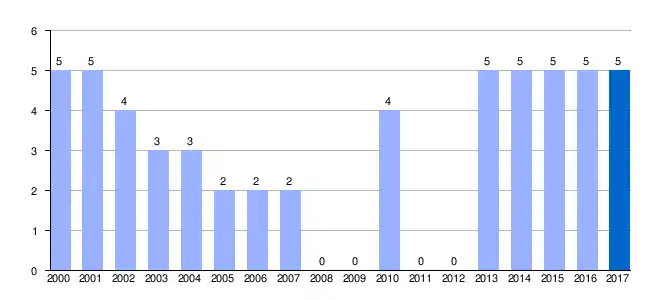 Gráfica de evolución demográfica de Negrillos[3] entre 2000 y 2017 |