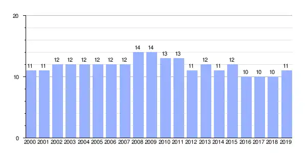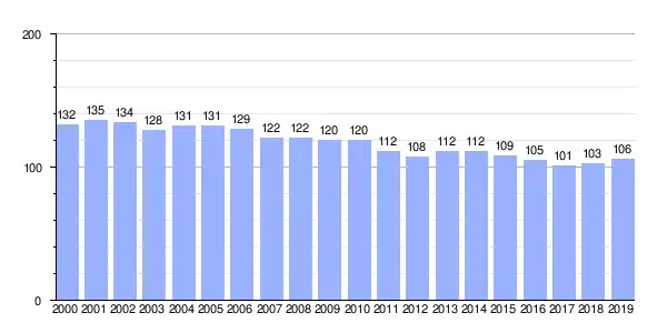 Gráfica de evolución demográfica de Nemeño (parroquia) entre 2000 y 2019 |