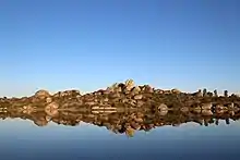 Embalse de Valdecañas: El pantano de Valdecañas se encuentra en la cuenca del rio Tajo. En una zona del pantano, donde dependiendo de la época se producen desniveles que van de los 5 a los 25 metros, se descubrieron una serie de yacimientos arqueológicos. Durante la época en la que el pantano estaba en su cota más baja se identificaron tres espacios habitacionales (Gonzalez Cordero 1999).[14]