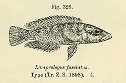 Neolamprologus fasciatus es una especie de peces de la familia Cichlidae en el orden de los Perciformes.