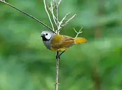 El olivino carigrís (Nesocharis capistrata)[2] es una especie de ave paseriforme de la familia Estrildidae propia del África occidental y central.