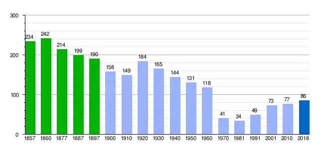 Población de derecho (1857-1897) según los censos de población del INE del siglo XIX. Población de derecho (1900-1991) o población residente (2001) según los censos de población del INE. Población según el padrón municipal de 2018 del INE. |