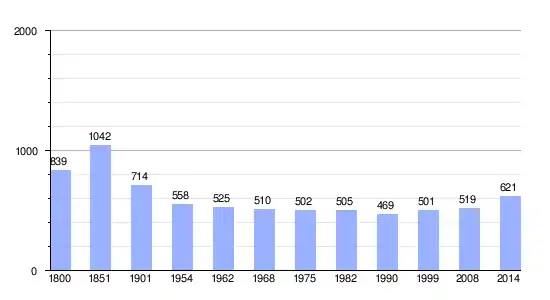 Los datos demográficos contemplados en este gráfico de la comuna de Neuilly-sur-Eure[4] se han cogido de 1800 a 1999 de la página francesa EHESS/Cassini, y los demás datos de la página del INSEE.[5]