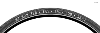 Marcas francesas actuales de tamaño (por ejemplo 700 x 35C) dan el diámetro aproximado del exterior (700 mm) y anchura (35 mm) del neumático. La letra al final indica el diámetro interior del neumático. En este caso, C significa 622 mm,[9] y como en el «700C» es una reminiscencia del viejo sistema francés de tamaño. No dice mucho hoy en día.