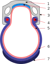 - Alambre del talón son hilos circulares de alambre incrustrados en el talón de la circunferencia interna de la cubierta.