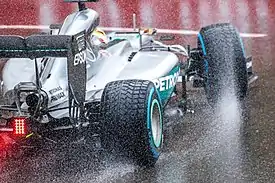 Cuando ha terminado de llover y la pista está en proceso de secado, no es raro ver a los competidores conducir intencionalmente por los zonas húmedas de la pista, con el fin de enfriar el caucho y evitar el deterioro de los neumáticos. Tan pronto como sea posible, los conductores se cambiarán a los neumáticos lisos para mantener velocidades competitivas.