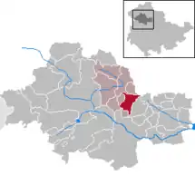 Se encuentra ubicado al norte de la ciudad de Eisenach, al noroeste de Erfurt, la capital del estado.