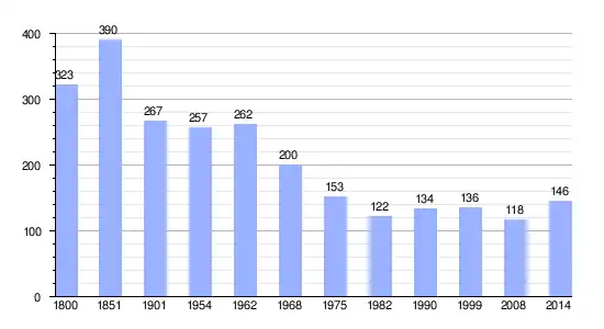 Los datos demográficos contemplados en este gráfico de la comuna de Neuville-près-Sées[4] se han cogido de 1800 a 1999 de la página francesa EHESS/Cassini, y los demás datos de la página del INSEE.[5]