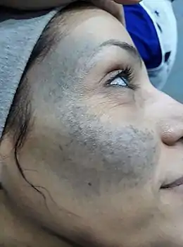 - Según su grado de extensión: existen formas leves poco extensas donde únicamente se aprecian lesiones alrededor del párpado, y otras en las que las manchas se extienden hasta la frente, el cuero cabelludo y el pabellón auricular. Con menos frecuencia pueden verse lesiones similares en la mucosa de la boca y la nariz. En el 90% de los casos la afectación se limita a una hemicara. Solamente en el 10% de las ocasiones es bilateral.