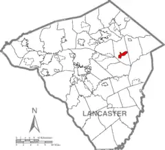 ![]() Ubicación en el condado de Lancaster ![]() Ubicación del condado en Pensilvania ![]() Ubicación de Pensilvania en EE. UU. | ||