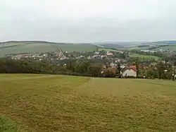 Se encuentra ubicada al sur de la región, en la zona más occidental de los montes Cárpatos, al este de Praga, cerca de la orilla del río Morava —un afluente izquierdo del Danubio— y de la frontera con la región de Moravia Meridional.[1]