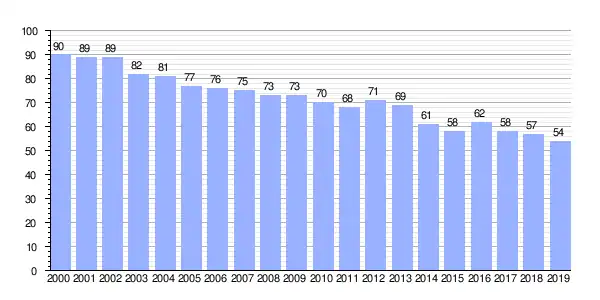 Gráfica de evolución demográfica de Niñodaguia entre 2000 y 2019 |