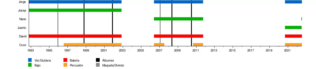 Jorge (voz y guitarra) Juanlu (bajo) David (batería) Cuco (percusión) | ||