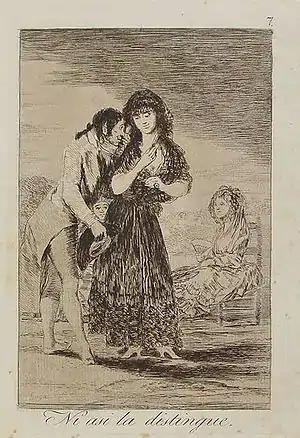 El aguafuerte Ni así la distingue es un grabado de la serie Los Caprichos del pintor español Francisco de Goya. Está numerado con el número 7 en la serie de 80 estampas. Se publicó en 1799.