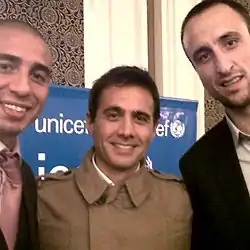 ![]() Nicolás Hueto con David Trezeguet y Emanuel Ginobili | ||