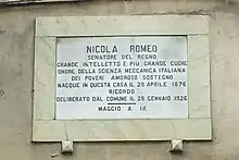 - «Nicola Romeo». comune.montalbano.mt.it (en italiano). Consultado el 17 de mayo de 2021.
