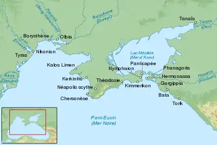 - Mogens Herman Hansen y Thomas Heine Nielsen (2004). «Área del mar Negro». An inventory of archaic and classical poleis (en inglés). Nueva York: Oxford University Press. pp. 935-936. ISBN 0-19-814099-1. (requiere registro).