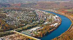 ![]() Imagen aérea de Donora y el río Monongahela | ||