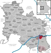 Se encuentra ubicado al oeste del estado, en la región de Suabia, cerca de la frontera con el estado de Baden-Wurtemberg y de la orilla del río Danubio.