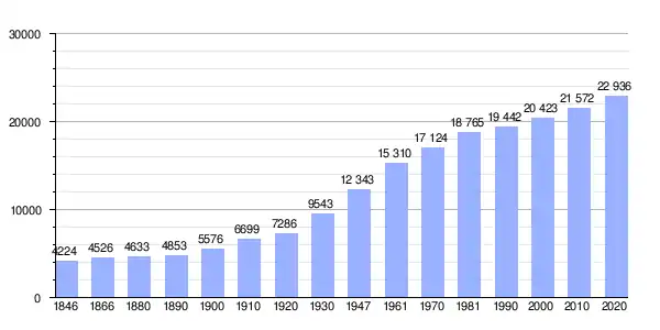 Todos los datos históricos relativos al actual municipio, el siguiente gráfico refleja su evolución demográfica, incluyendo municipios después de efectuada la fusión el 1 de enero de 1977.