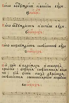 Los que místicamente somos íconos de los querubines y a la vivificante Trinidad, cantamos el himno Tres veces Santo, todo afán material desechemos... Para recibir al Soberano del Todo, por angélicas huestes, invisiblemente escoltado: ¡Aleluya! ¡Aleluya! ¡Aleluya