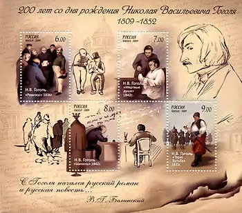 Wikimedia Commons alberga una categoría multimedia sobre Nikolái Gógol en los sellos postales.