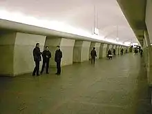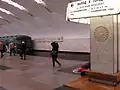 1990, la estación de la calle Podbelskogo volvió al equipo de Alióshina, Samoilova [36] y Alekseev. La estación lleva el nombre de Vadim Podbelsky, un estadista del siglo XX y líder del partido y presentaba un busto esculpido de Podbelsky creado por Alekseev. Un proyecto estándar de hormigón armado, el diseño tenía dos filas de 26 columnas revestidas con mármol blanco. Pegados a las paredes había paneles de metal rayados y el suelo era de granito gris con estrechas franjas de detalles en rojo y negro. [37] En 2014, la estación pasó a llamarse estación Bulvar Rokossovskogo, ya que la calle en la que se encontraba su entrada principal había cambiado de nombre en 1994. [38]