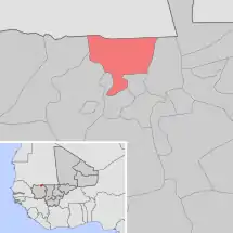 Se encuentra ubicada al oeste del país y al noreste de la región de Kayes, en la zona climática del Sahel, cerca de la frontera con Mauritania y la región de Kulikoró.
