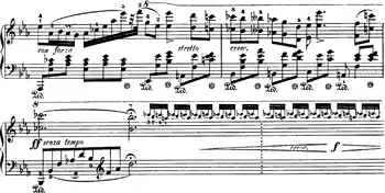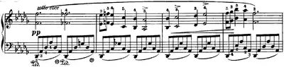 La sección inicial se mueve hacia una sección central contrastante, que fluye de regreso al material de apertura en un pasaje de transición donde la melodía flota por encima de diecisiete compases consecutivos de acordes mayores en Re bemol. La repetición de la primera sección surge de esto, seguida de un final en una tercera de Picardía.