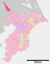Su superficie total es de 103,55 km².[4] Está ubicada a unos 30 kilómetros de Tokio.