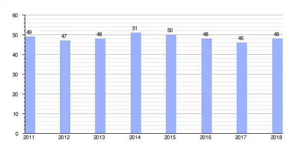 Gráfica de evolución demográfica de Noenlle entre 2011 y 2018 |