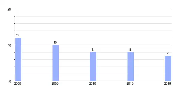 Gráfica de evolución demográfica de Nogueira entre 2000 y 2019 |
