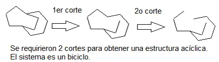 • Los sistemas bicíclicos necesitan dos cortes para obtener un compuesto acíclico: