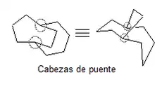 Una cabeza de puente es un átomo del sistema policíclico que se une a tres o más átomos del esqueleto (excepto el hidrógeno). Es un átomo común entre los puentes.